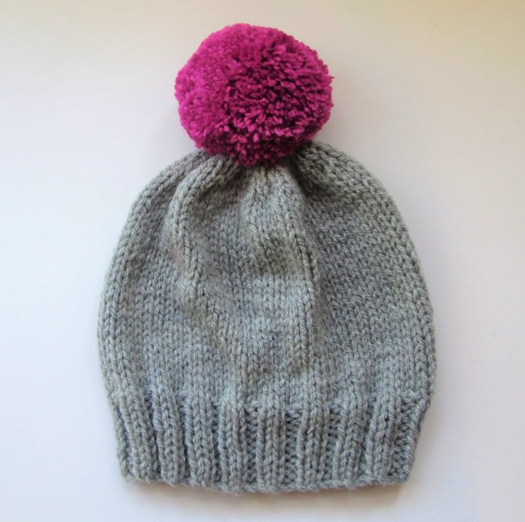 Product Name: Grey and pink bobble hat outlet