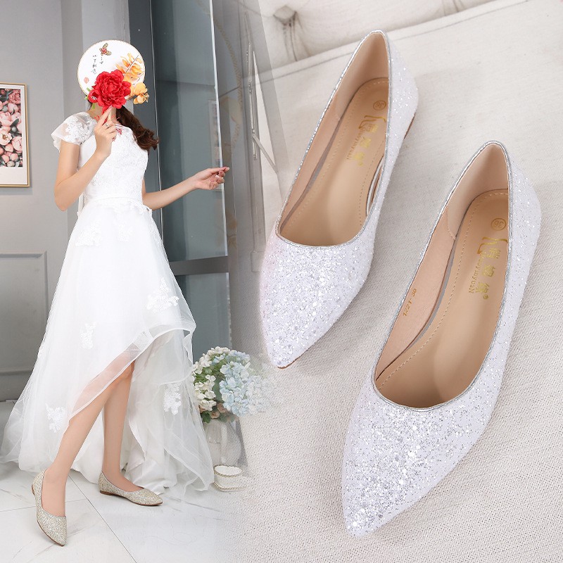 Product Name: White flat shoes for wedding outlet
