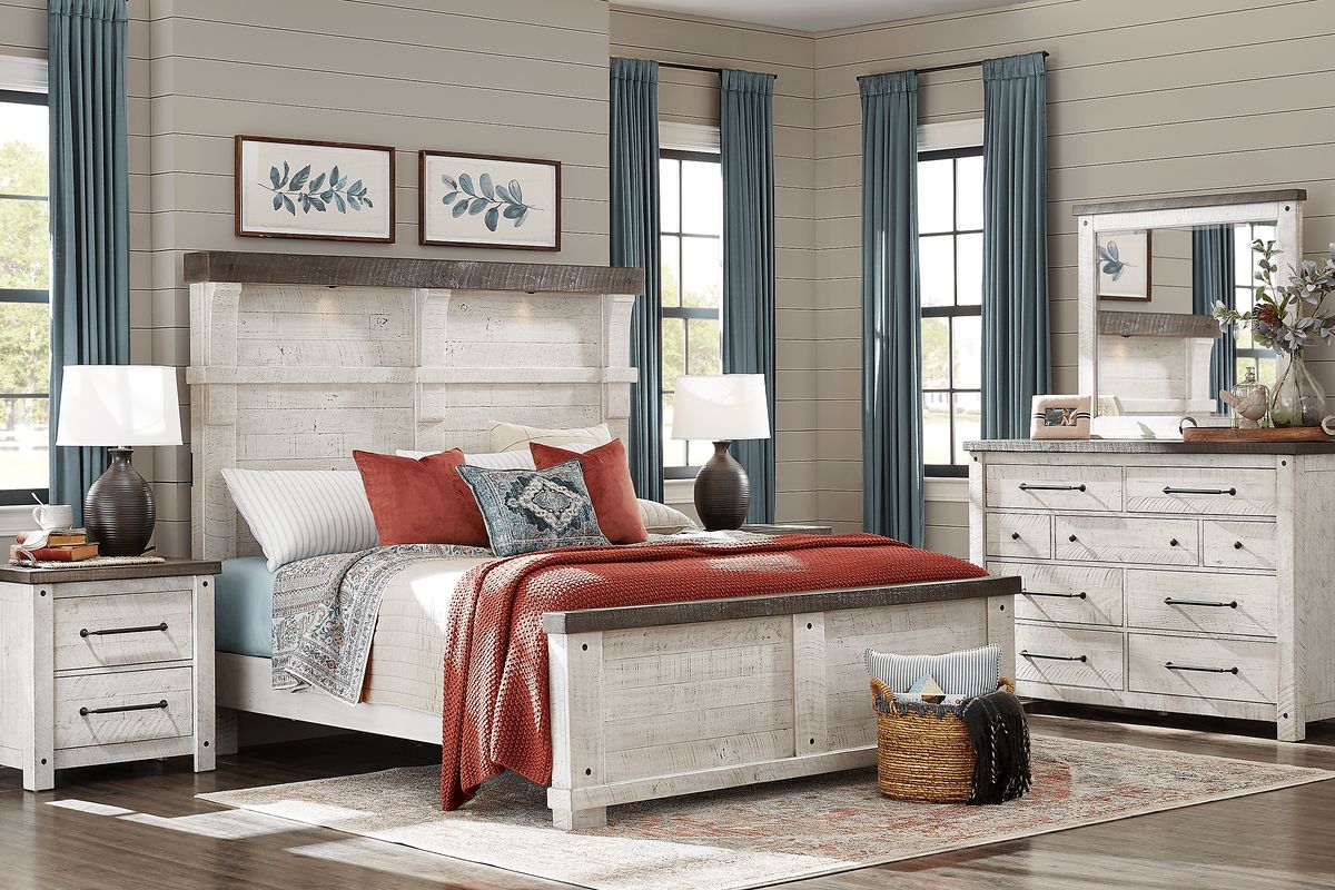 Product Name: White farmhouse queen bedroom set outlet