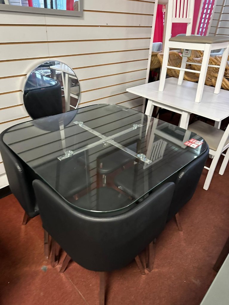 Product code: Elsie glass dining table & 4 black chairs outlet