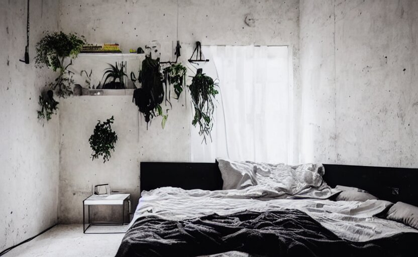 Product Name: Black and white bedroom with plants outlet