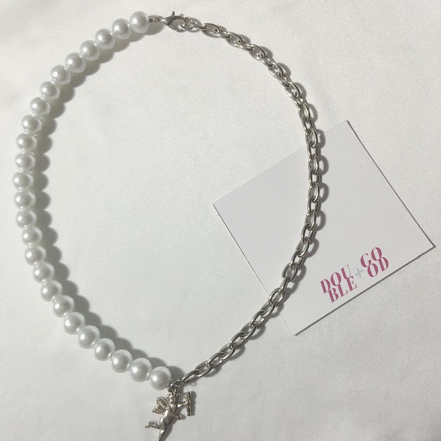 Product Name: Half pearl half chain necklace silver outlet