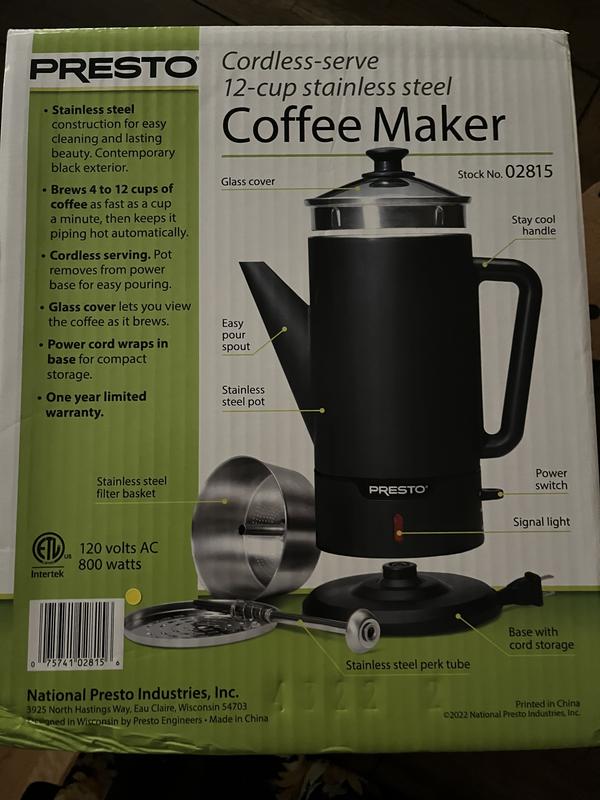 Product Name: Cordless electric coffee percolator outlet